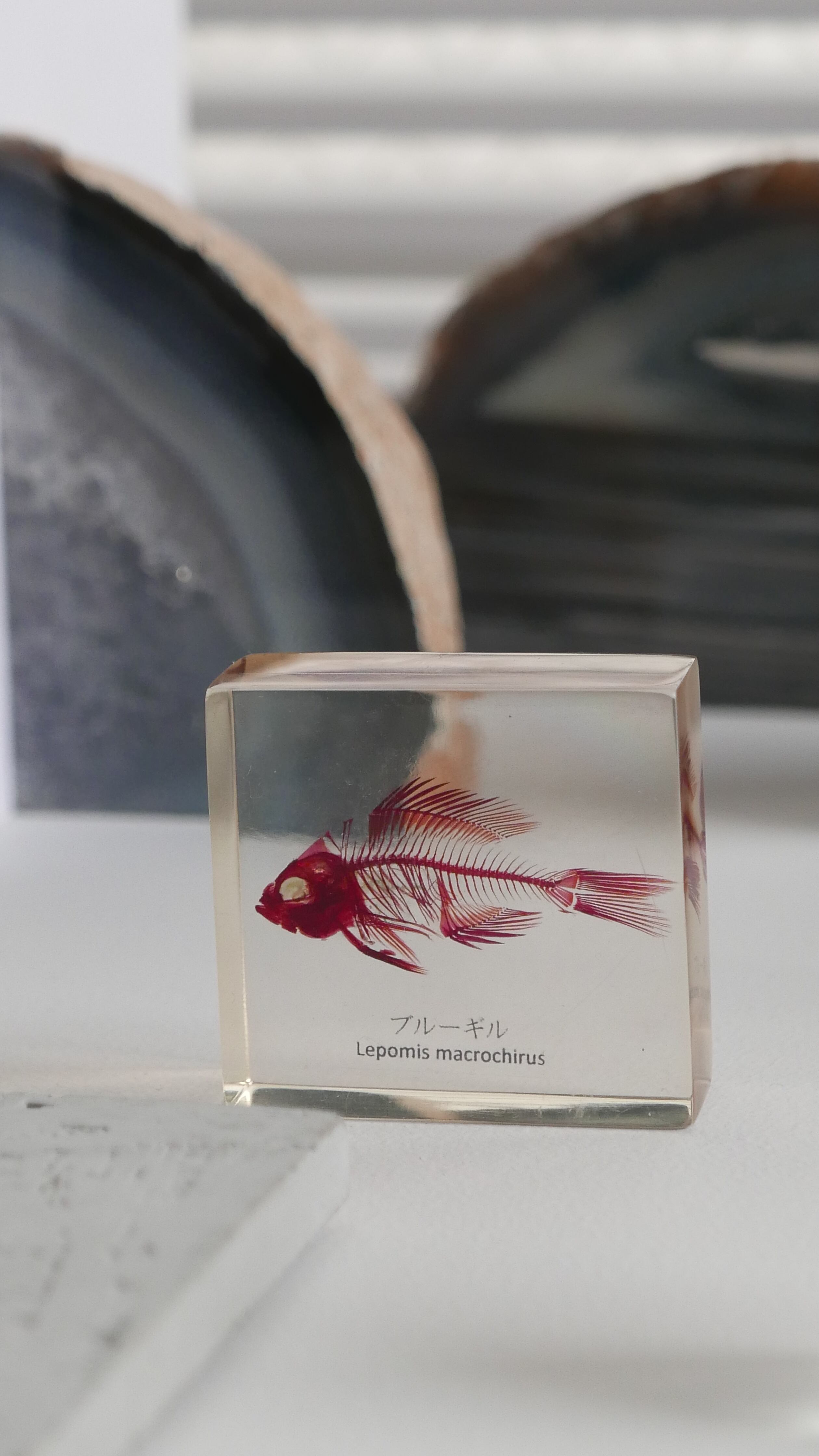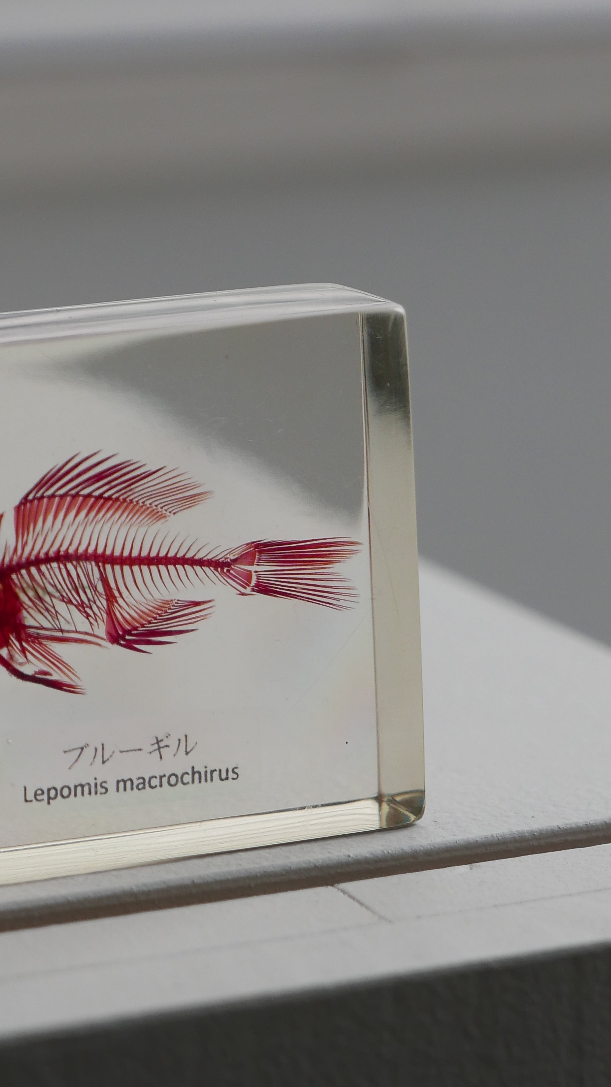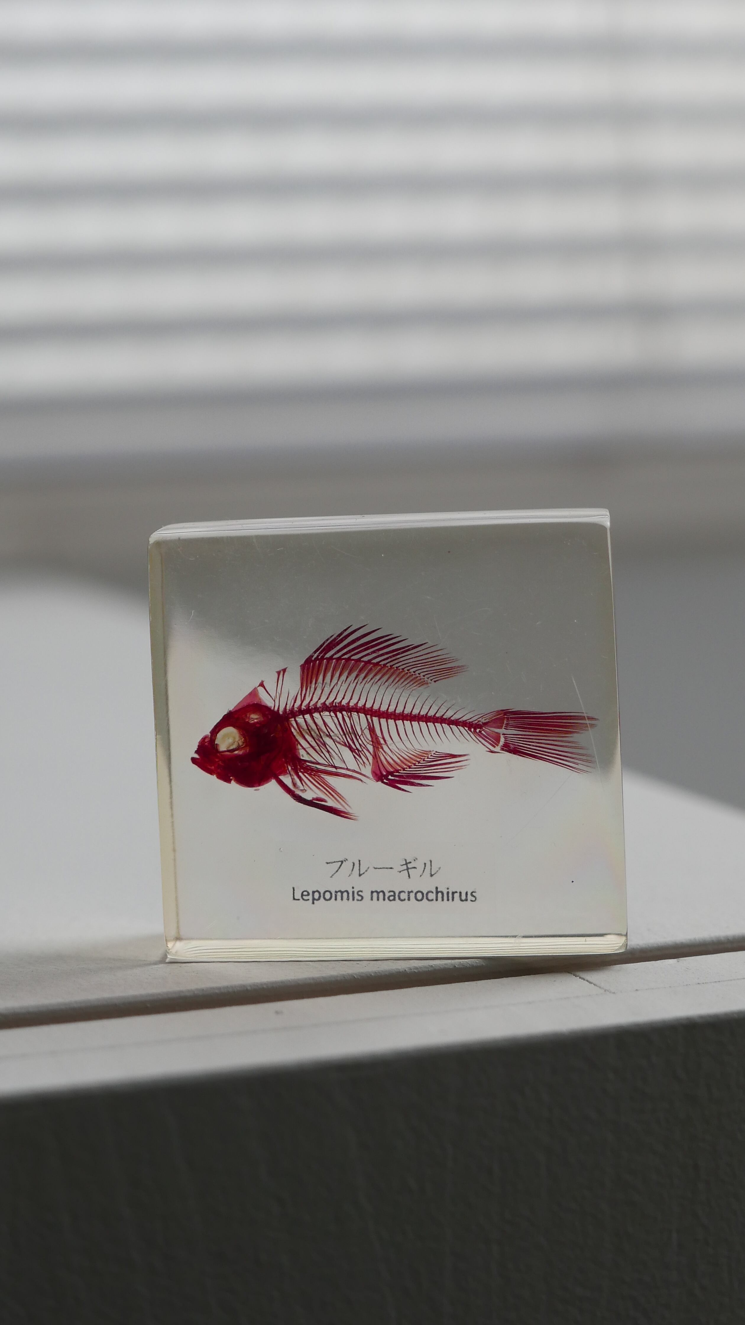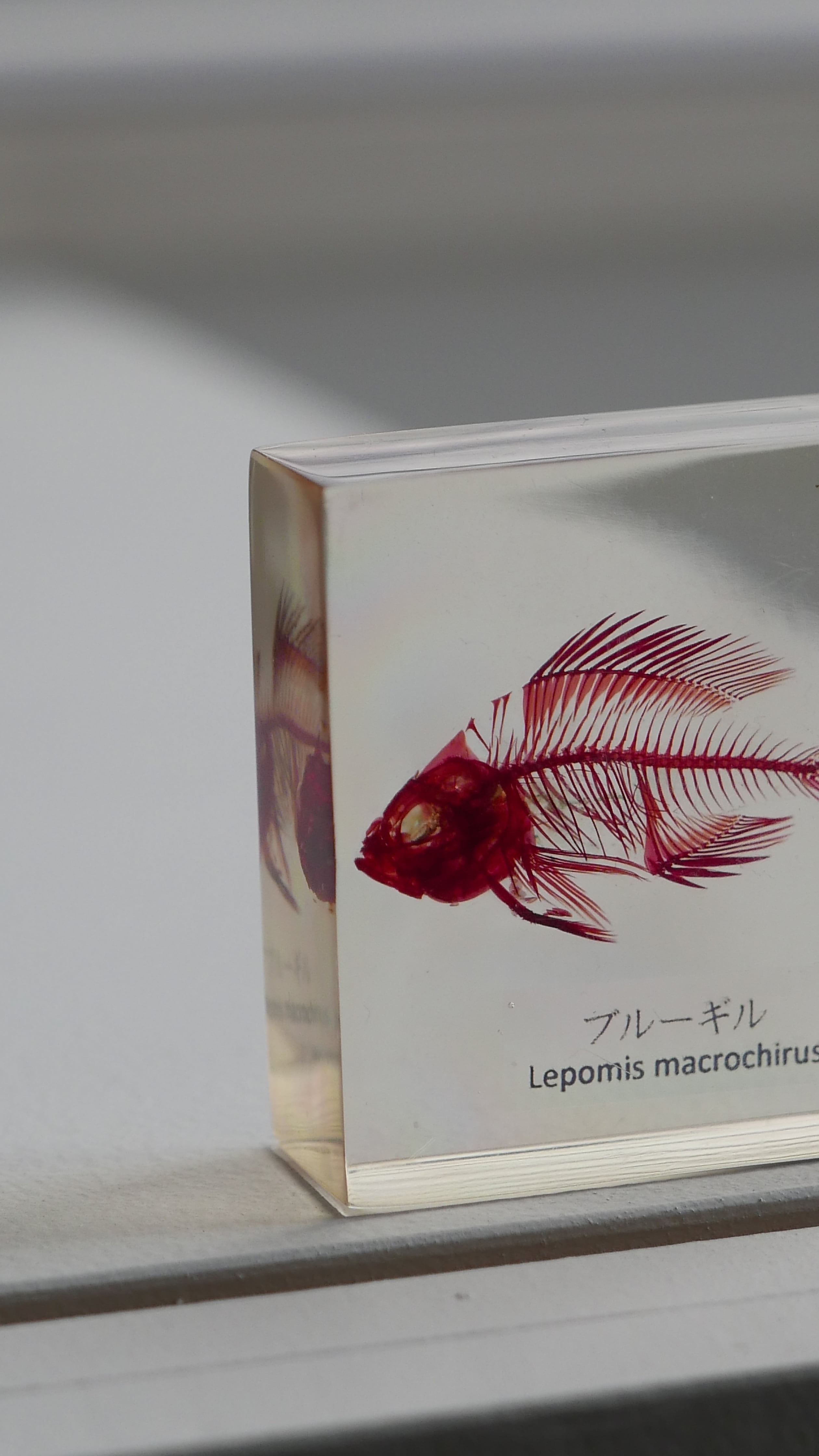 古いブルーギルの骨格標本。