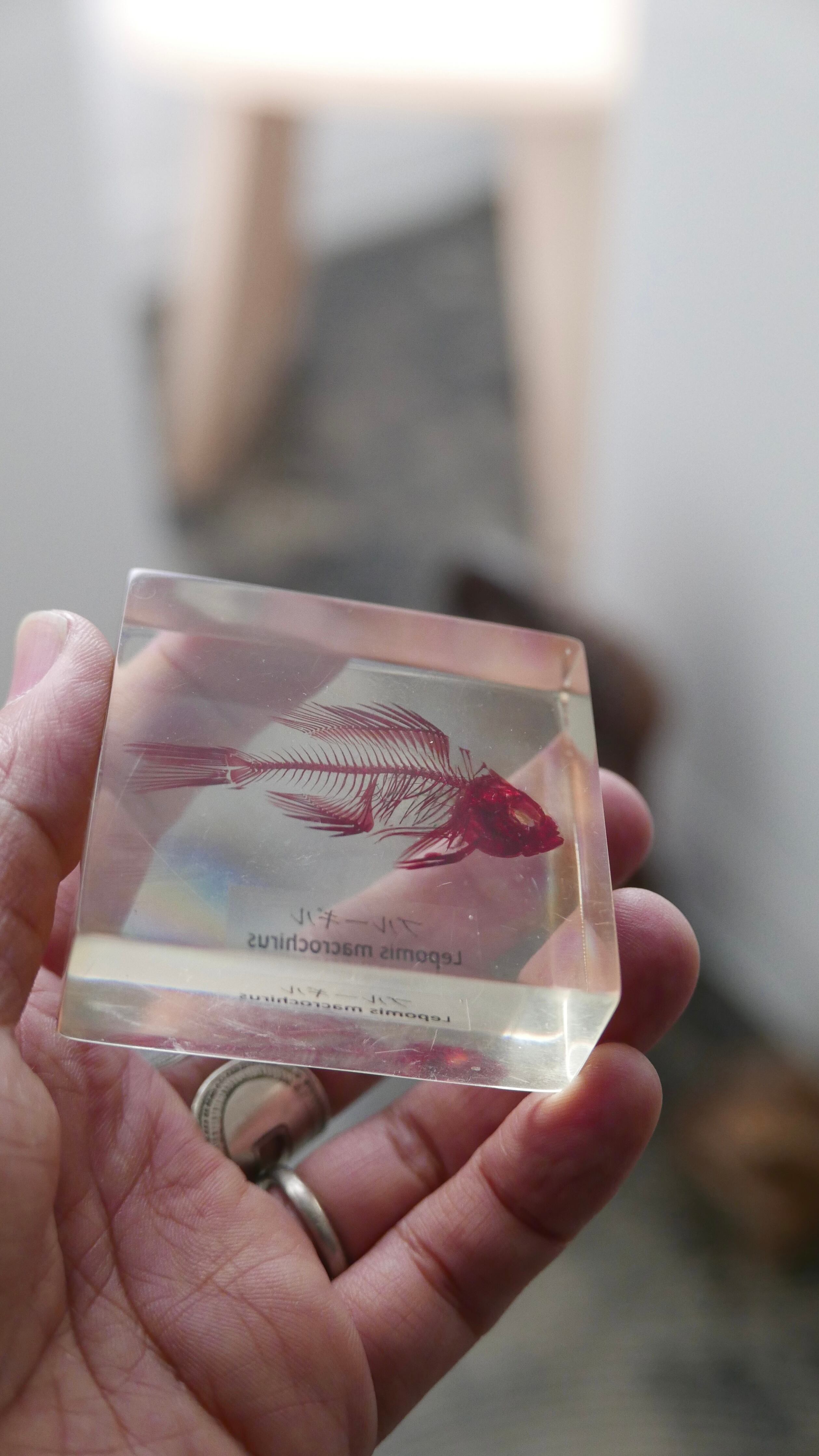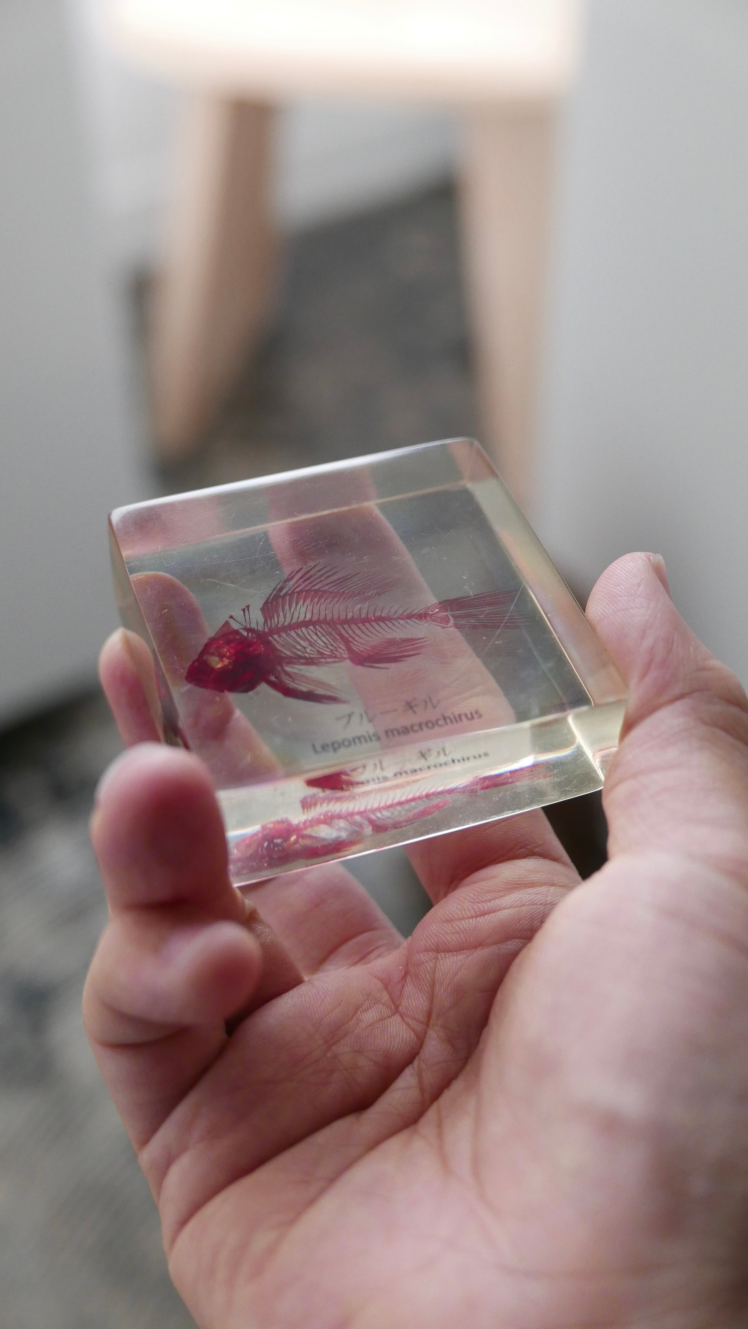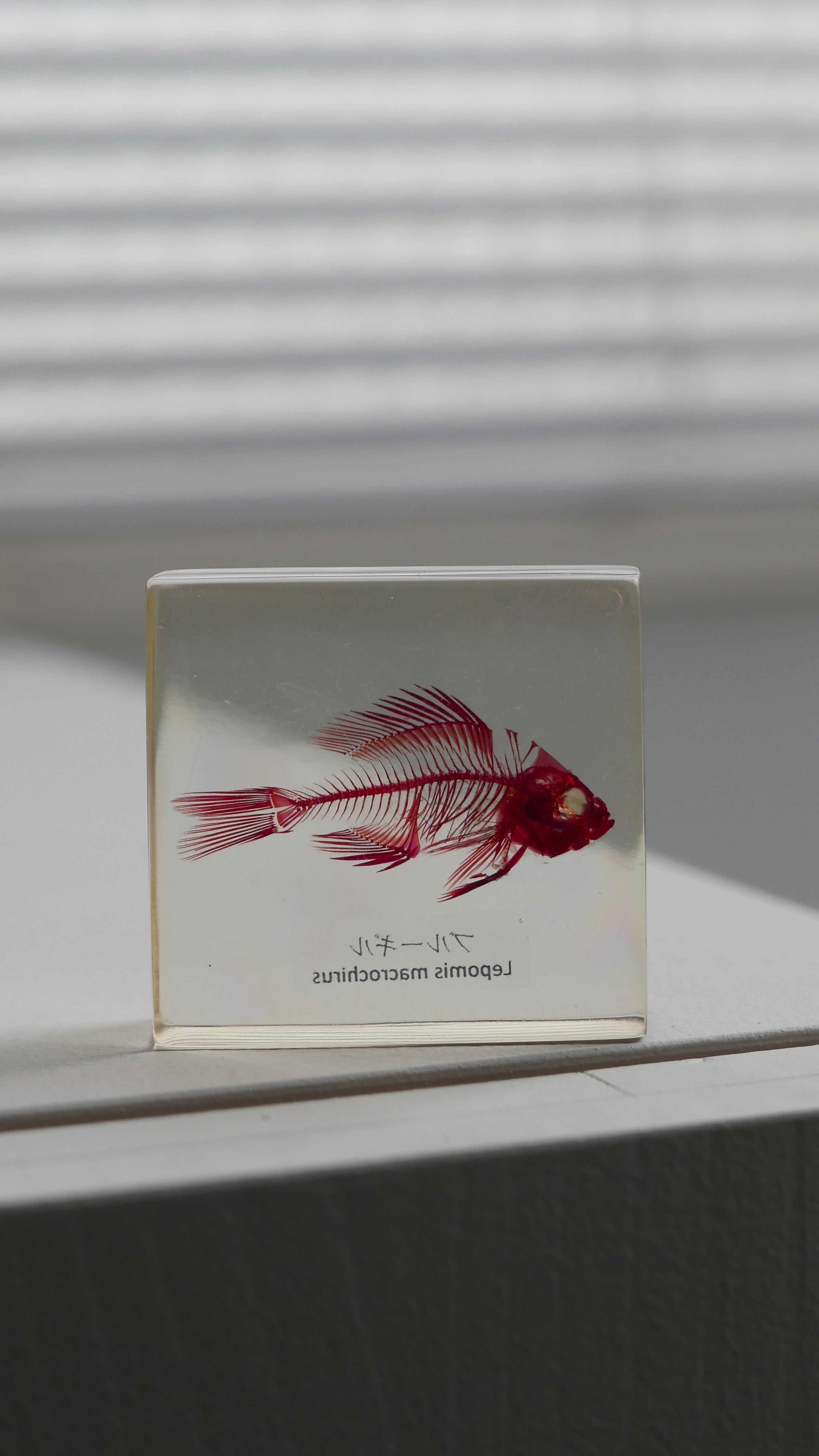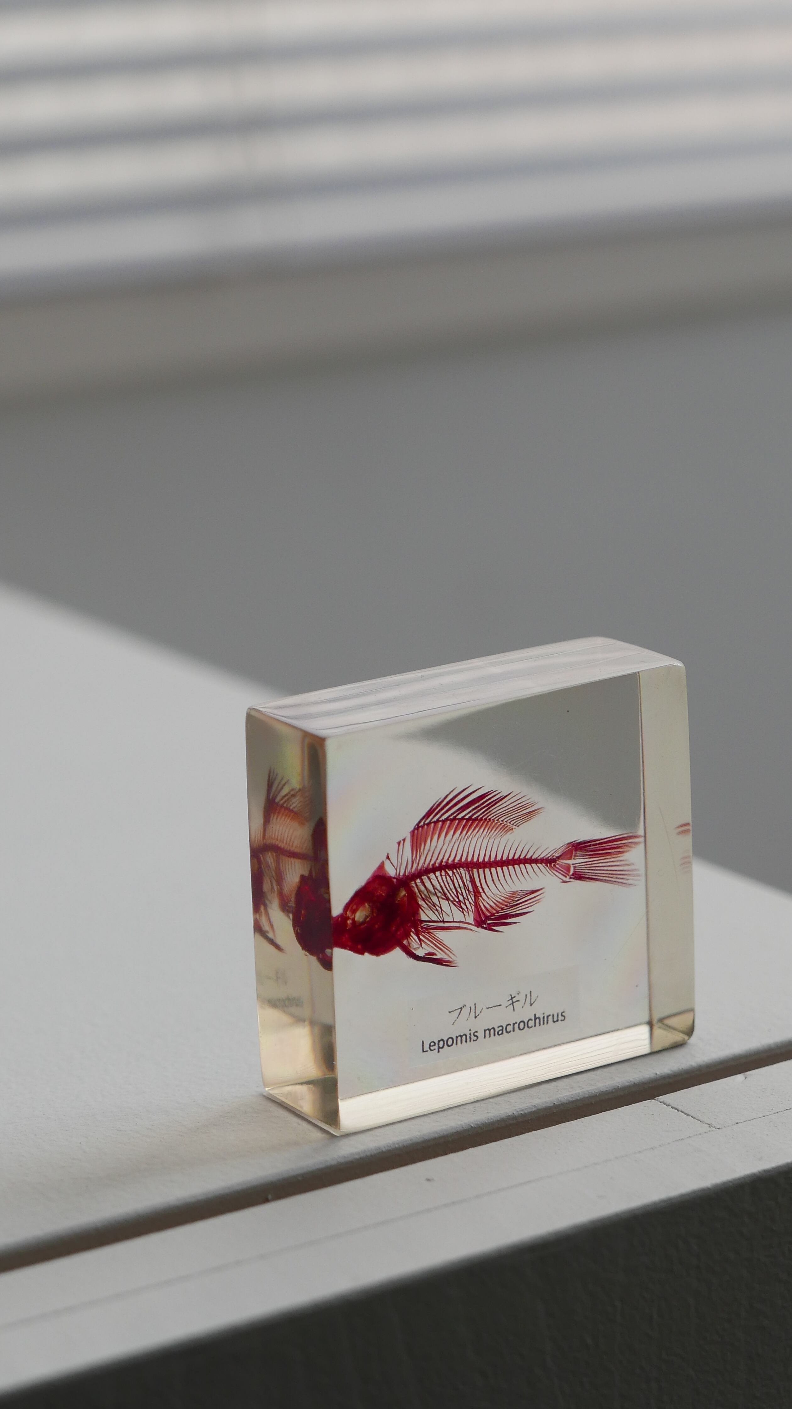 古いブルーギルの骨格標本。