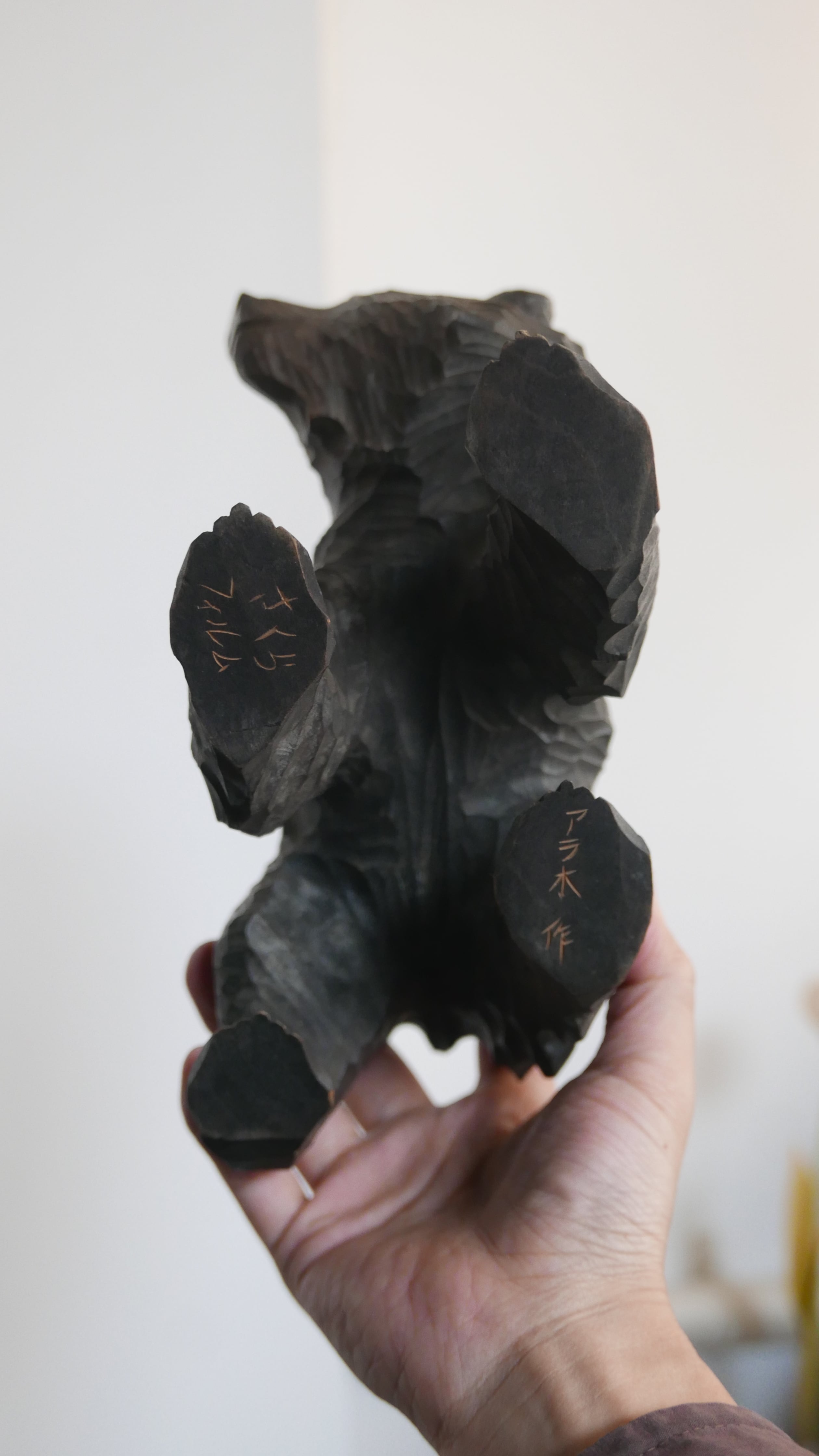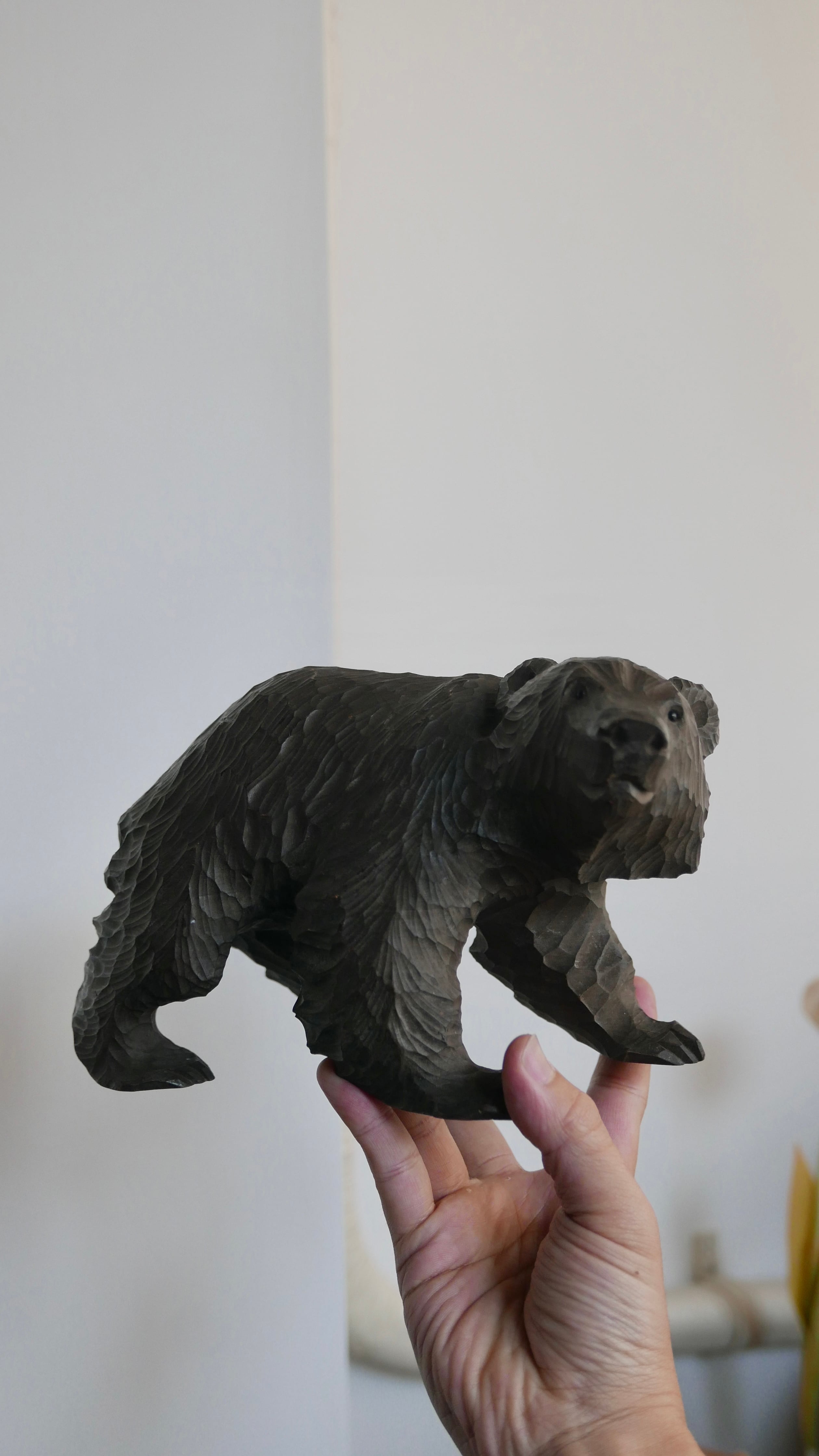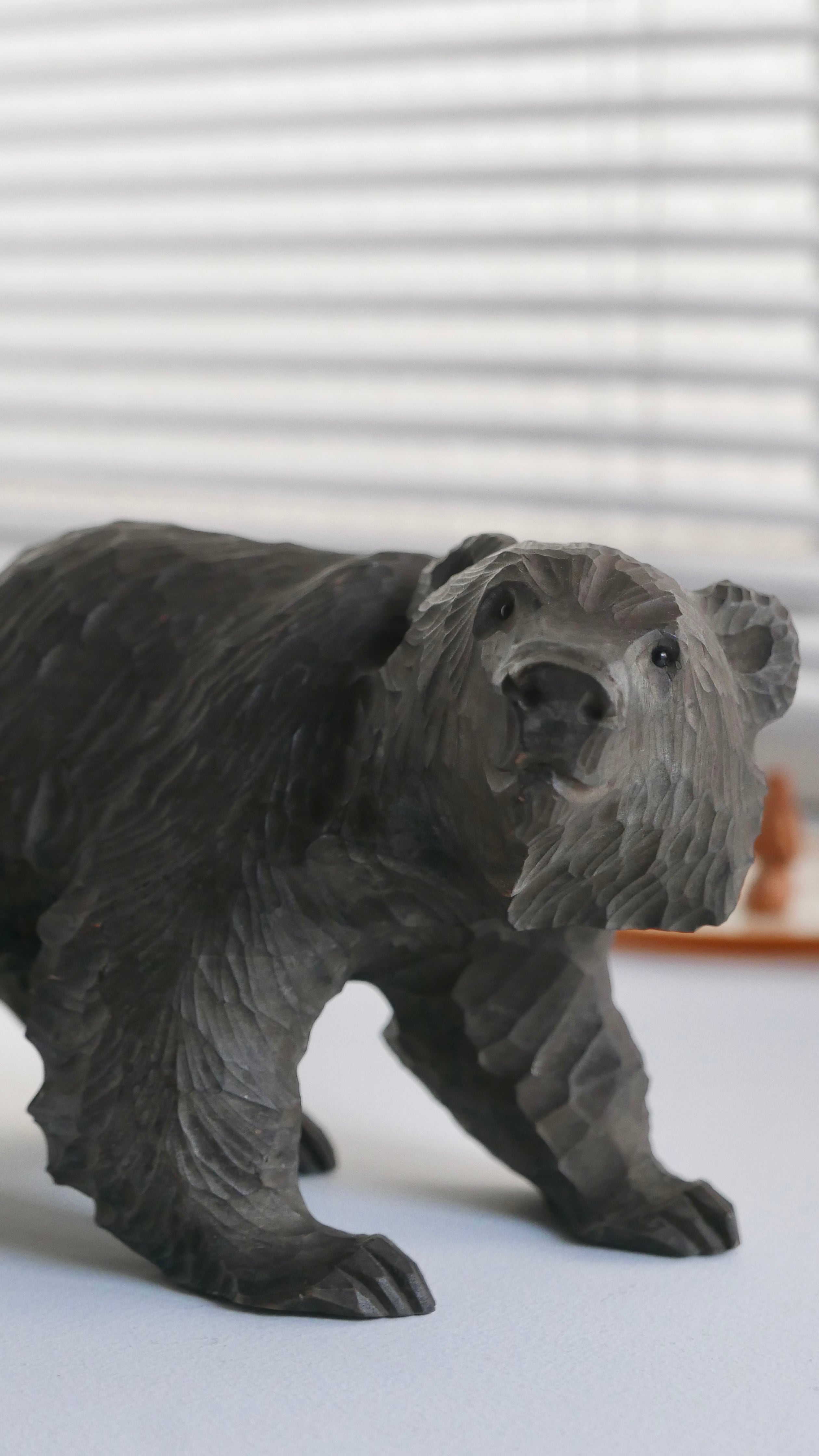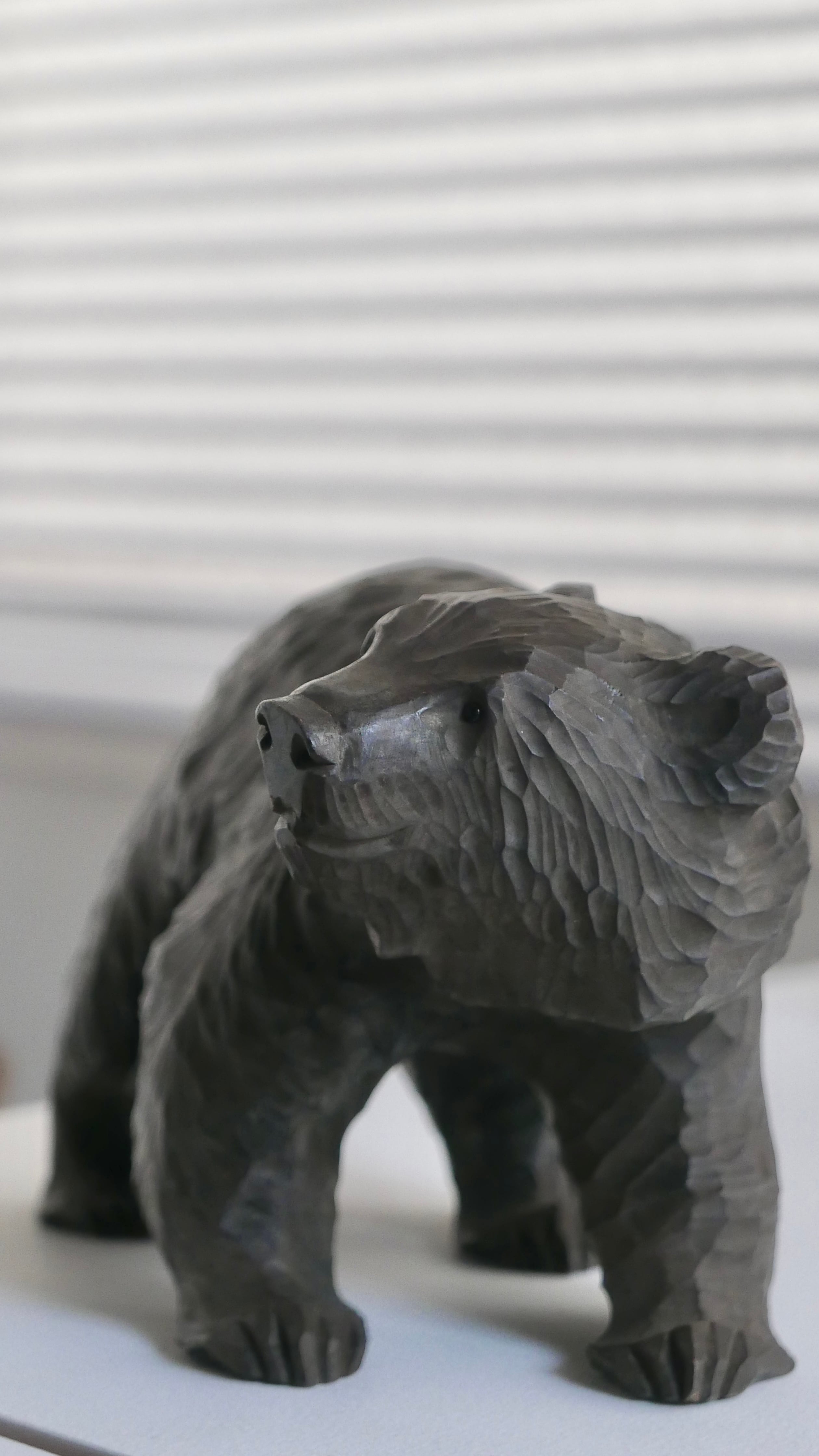 やわらかな表情の木彫りぐま