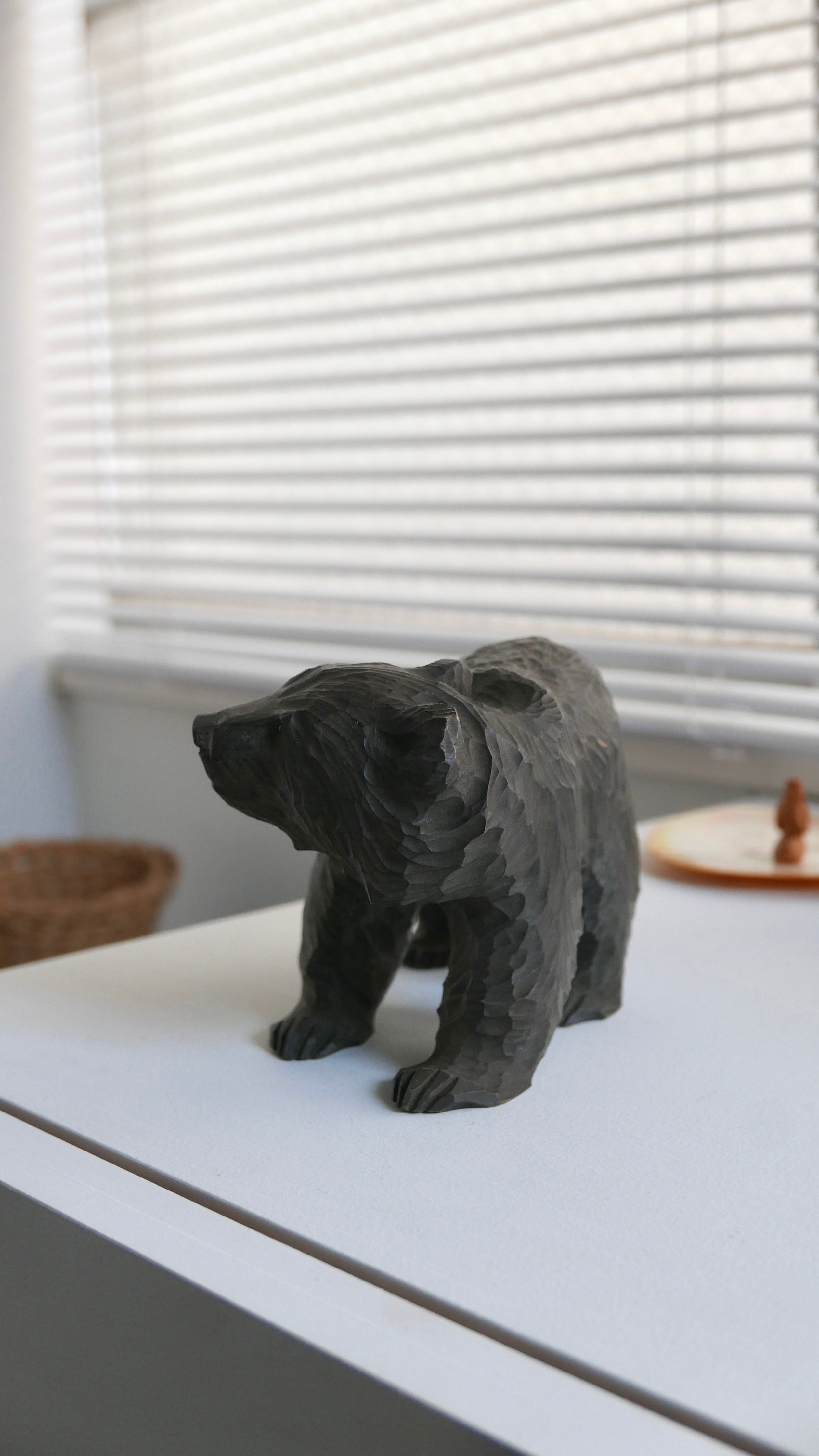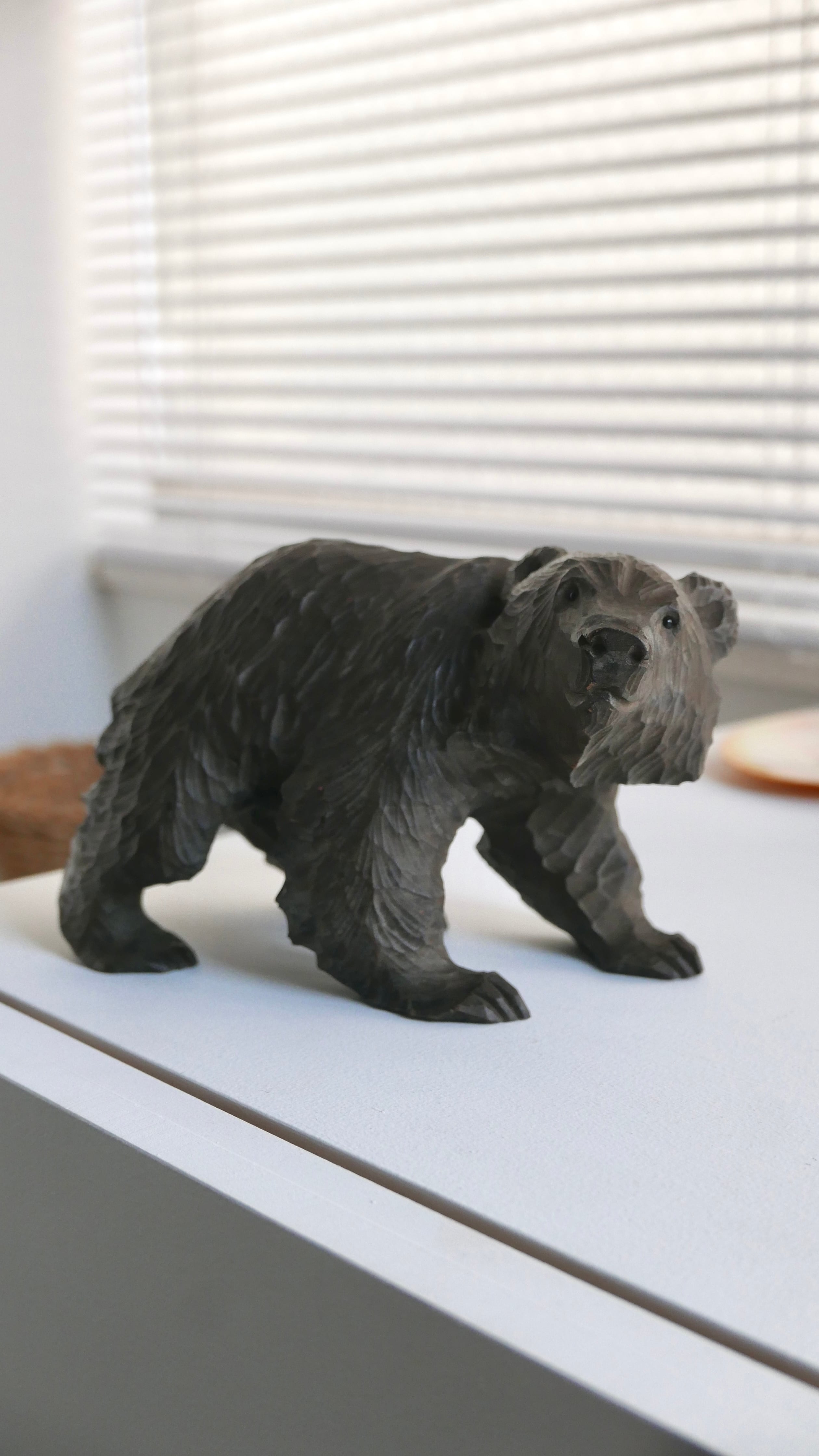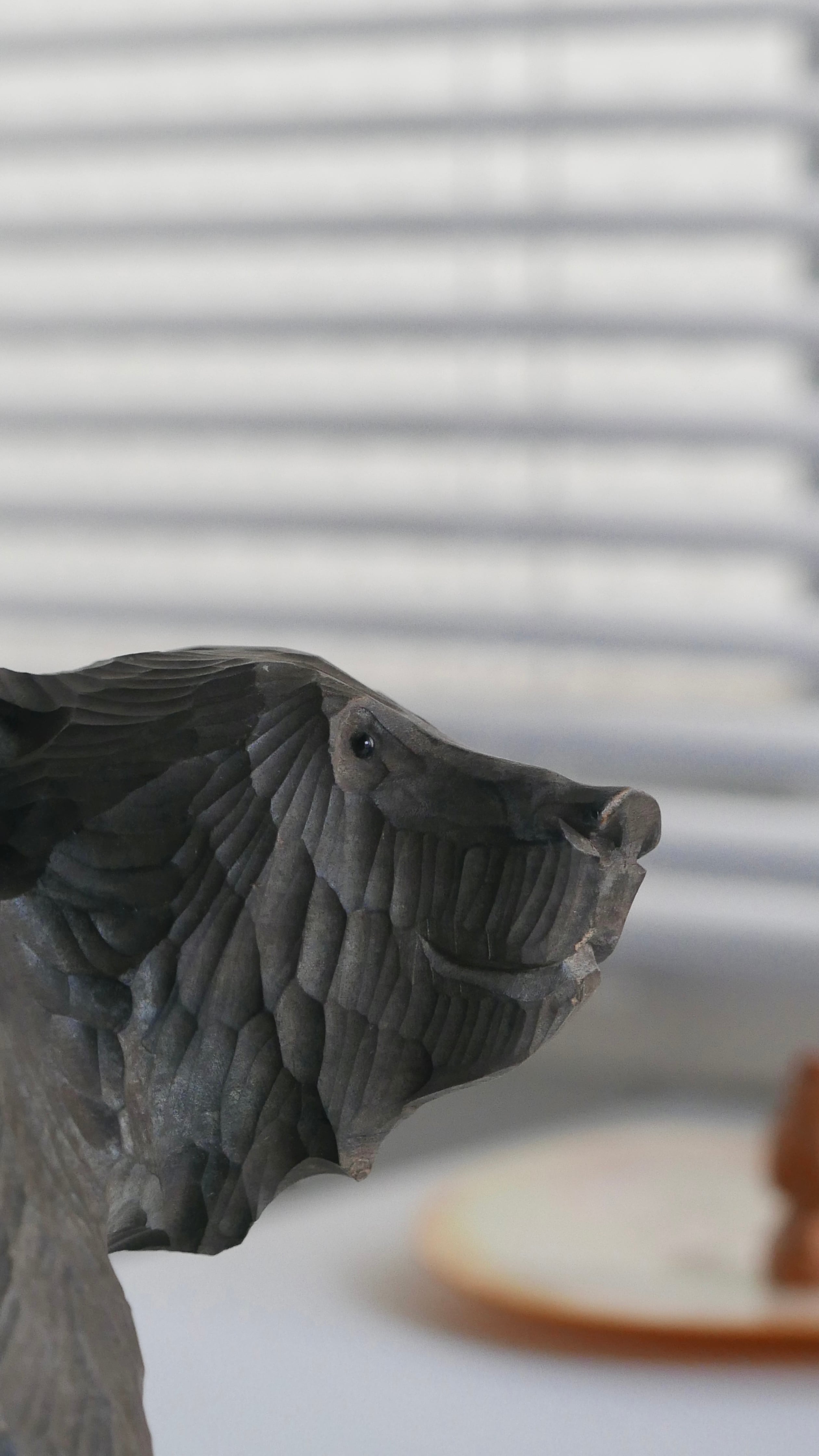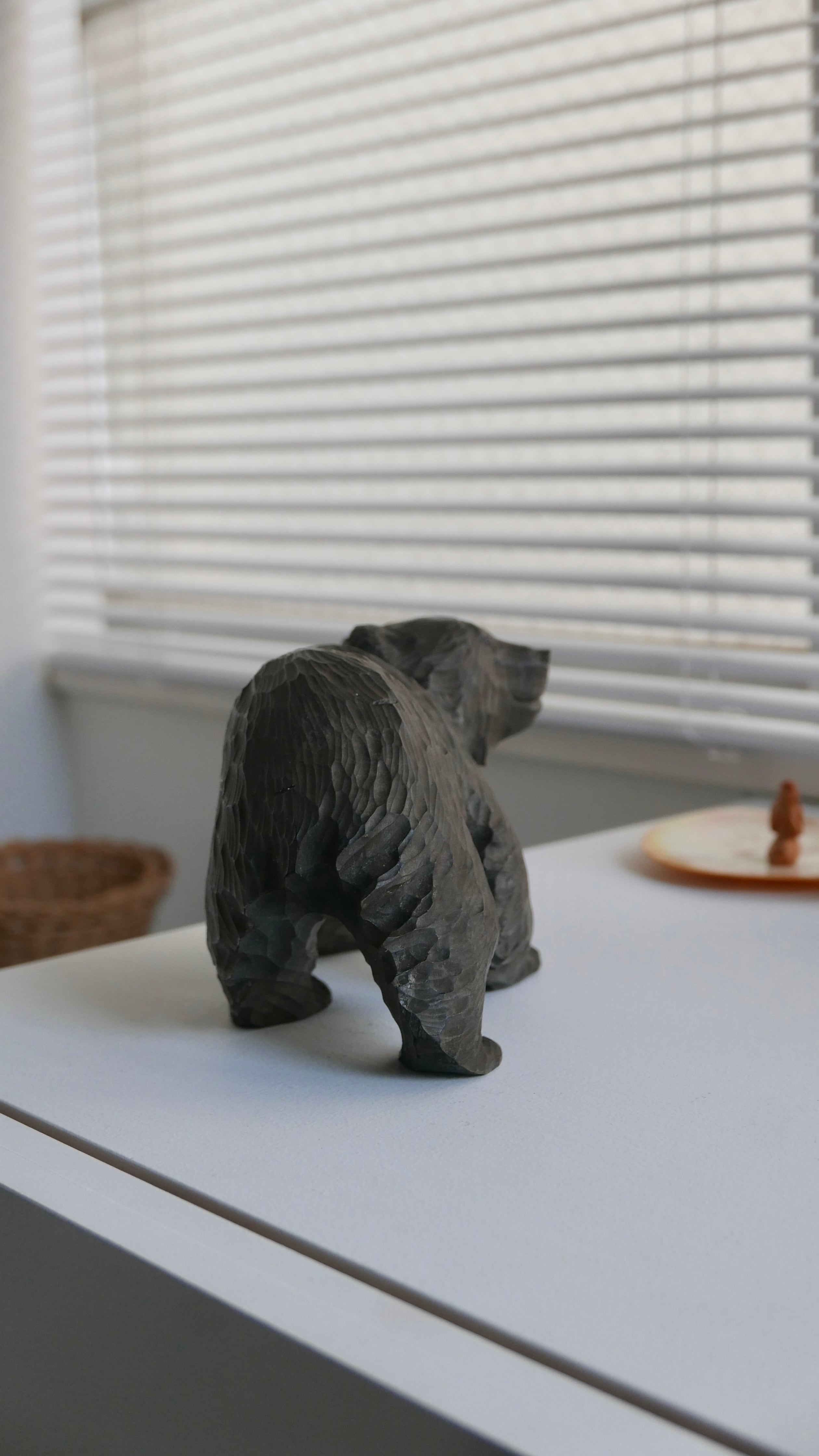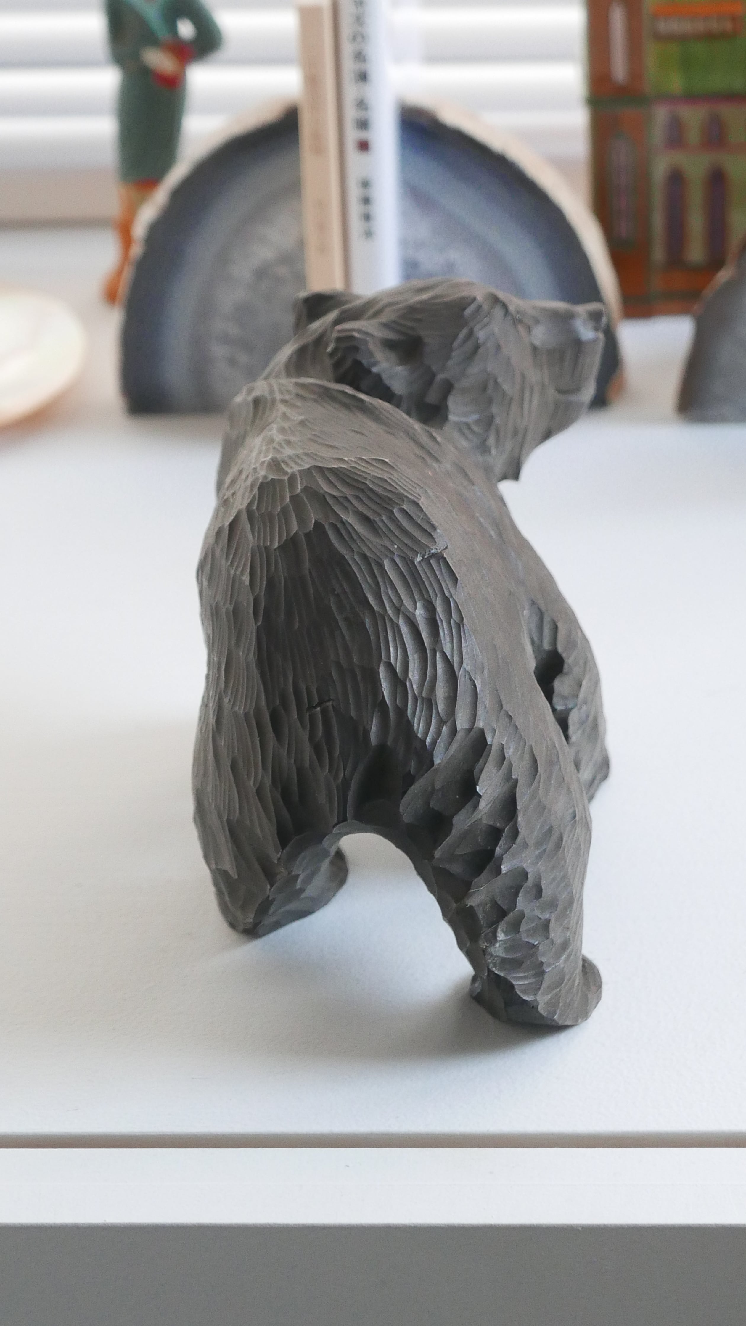 やわらかな表情の木彫りぐま