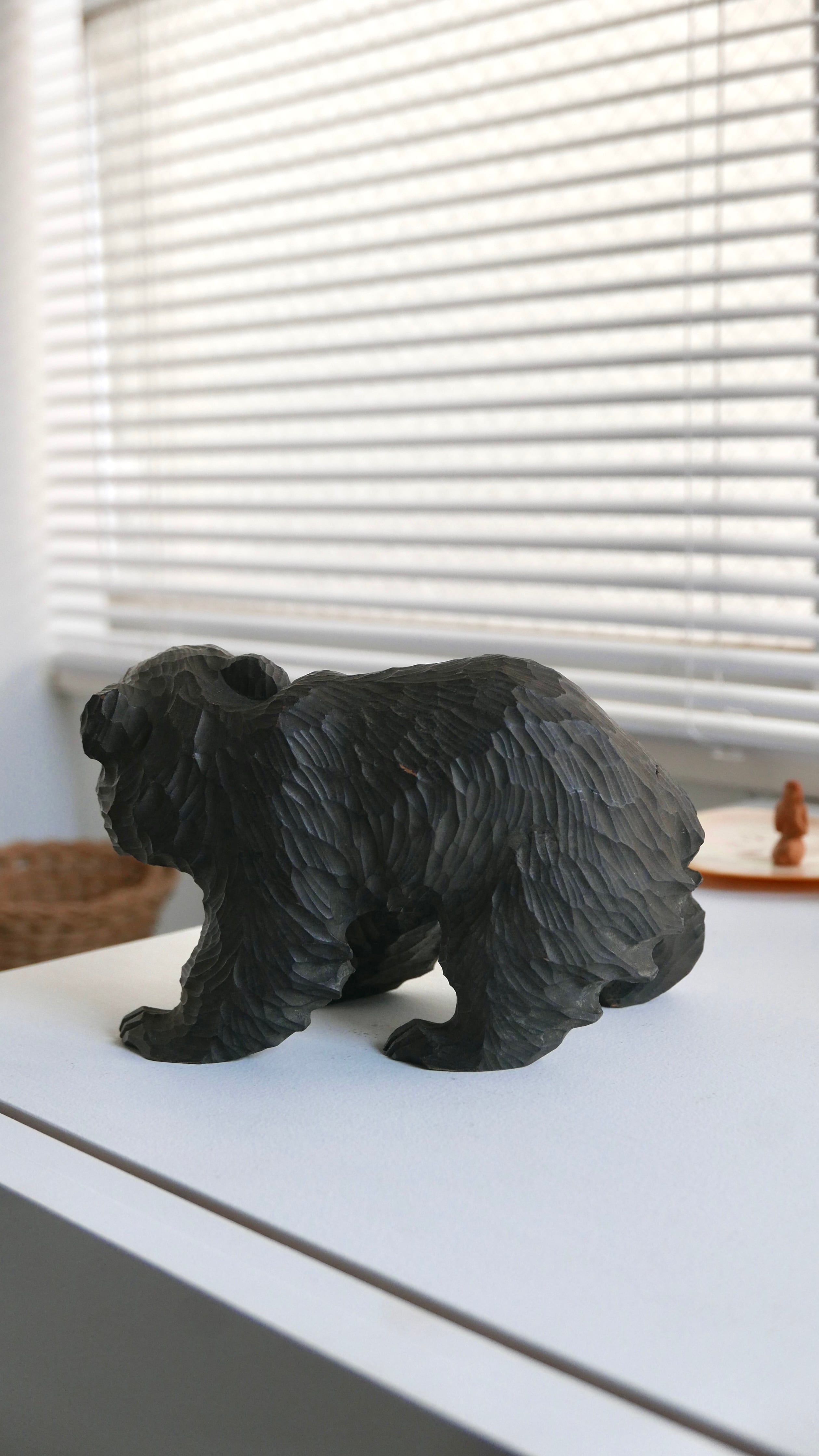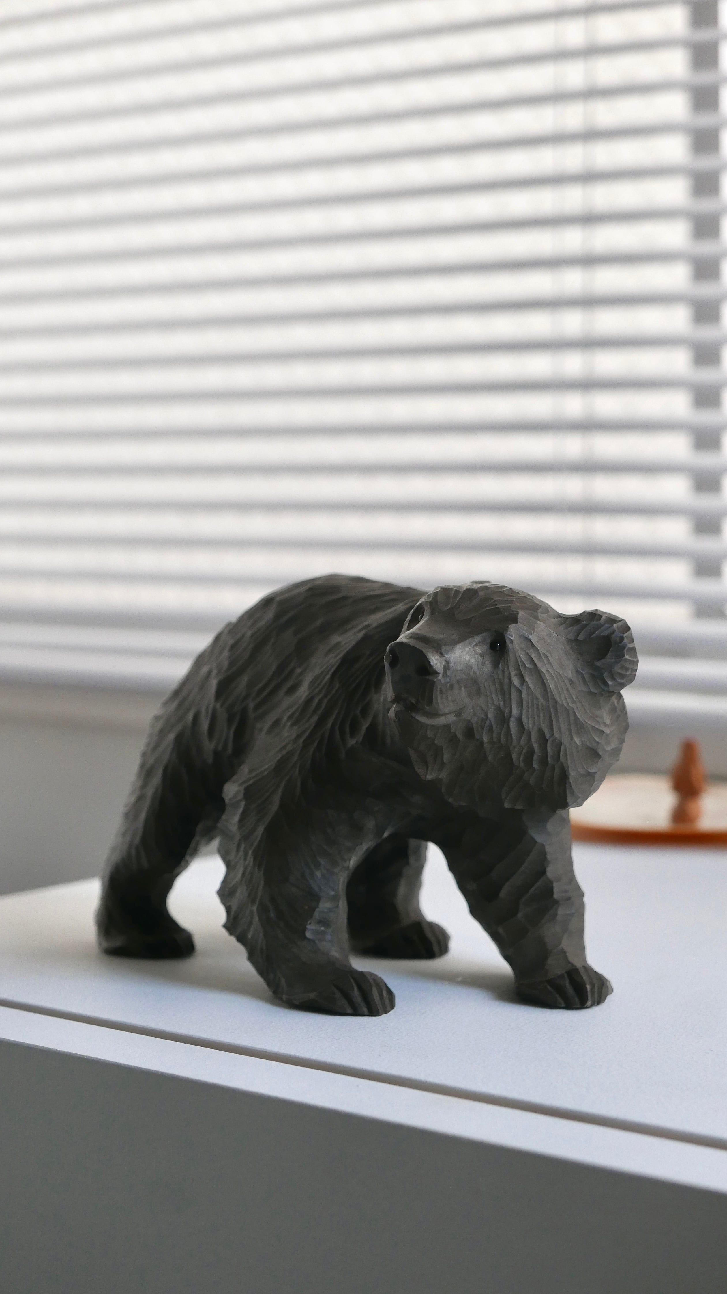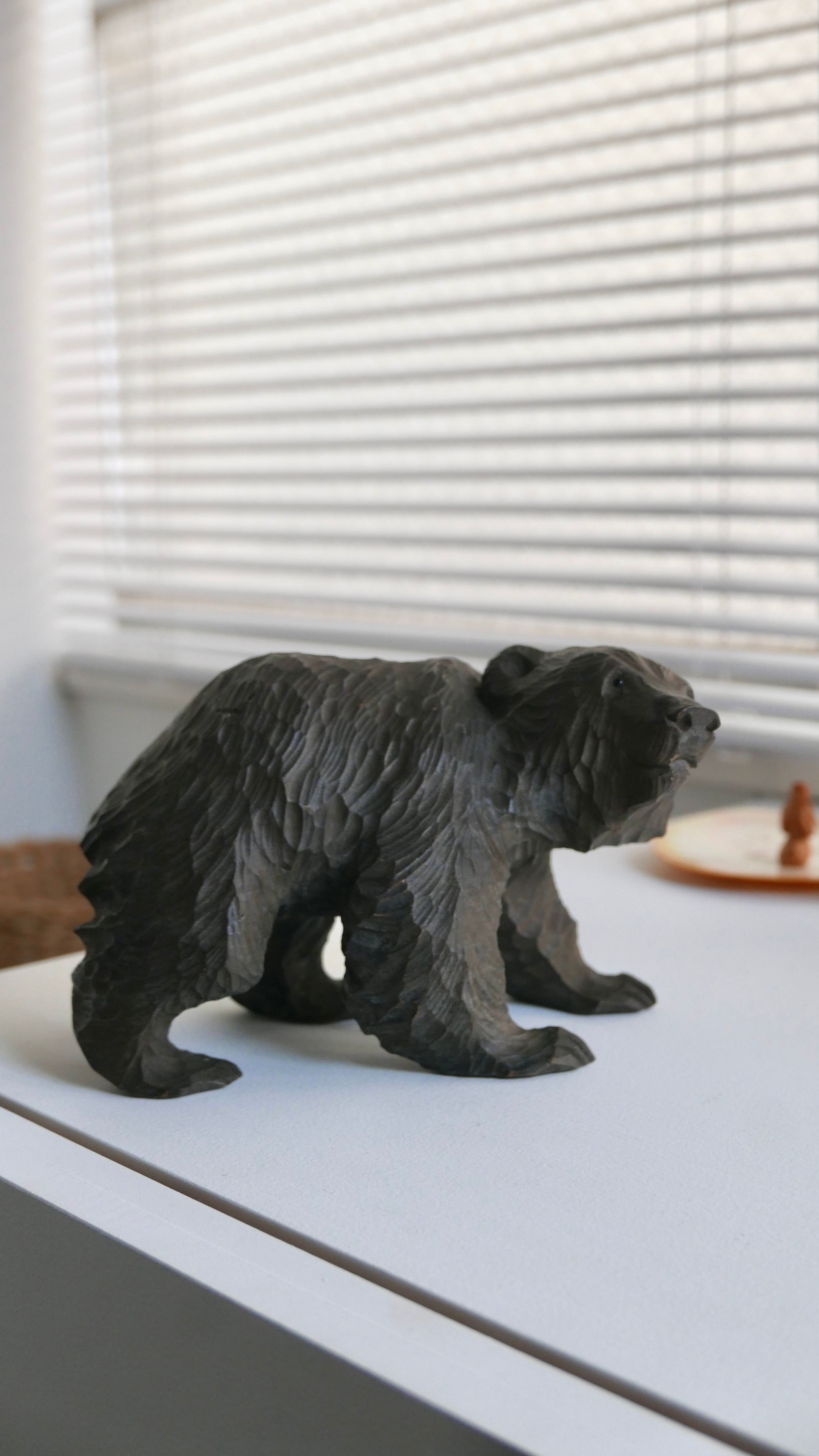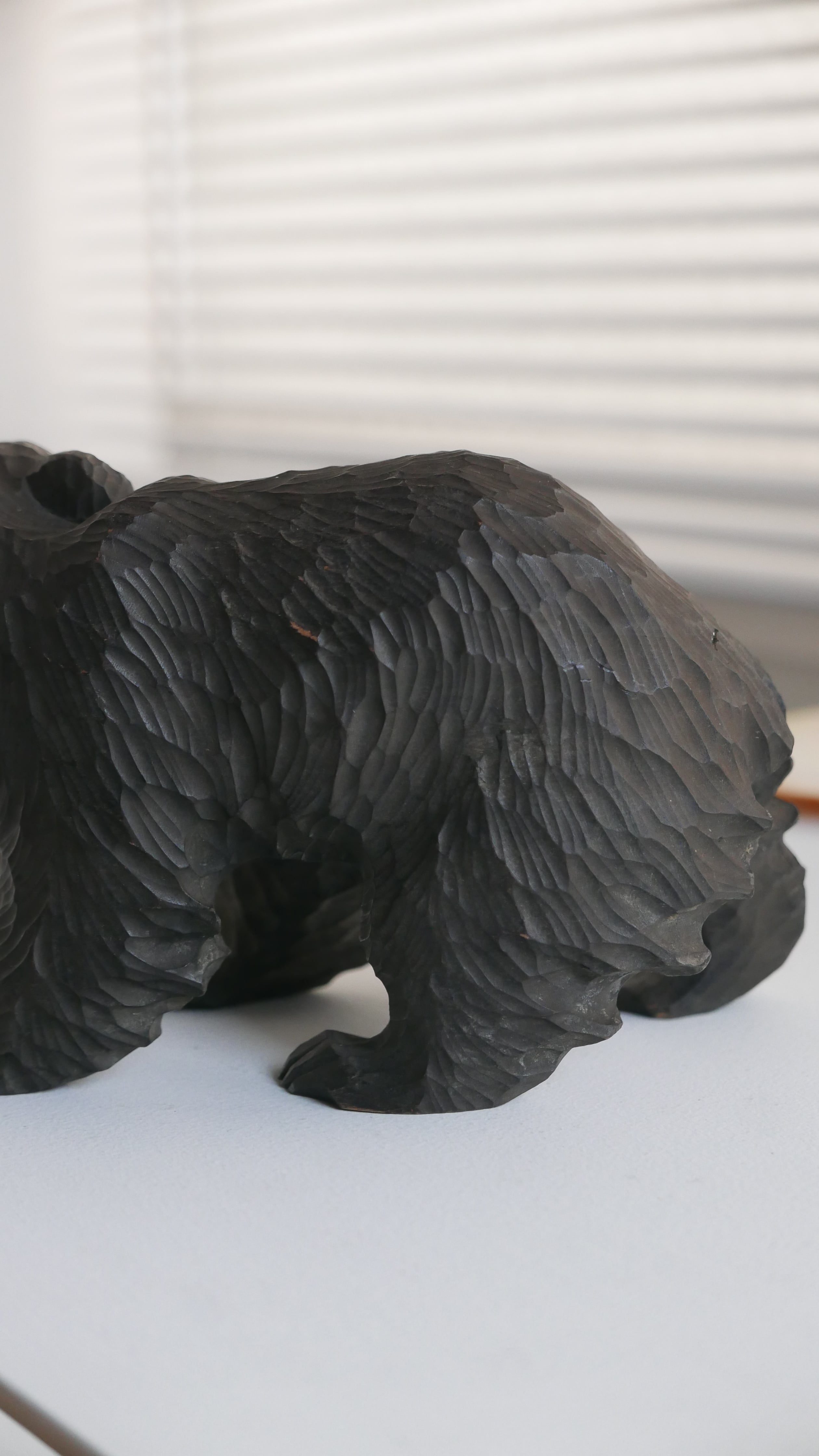 やわらかな表情の木彫りぐま