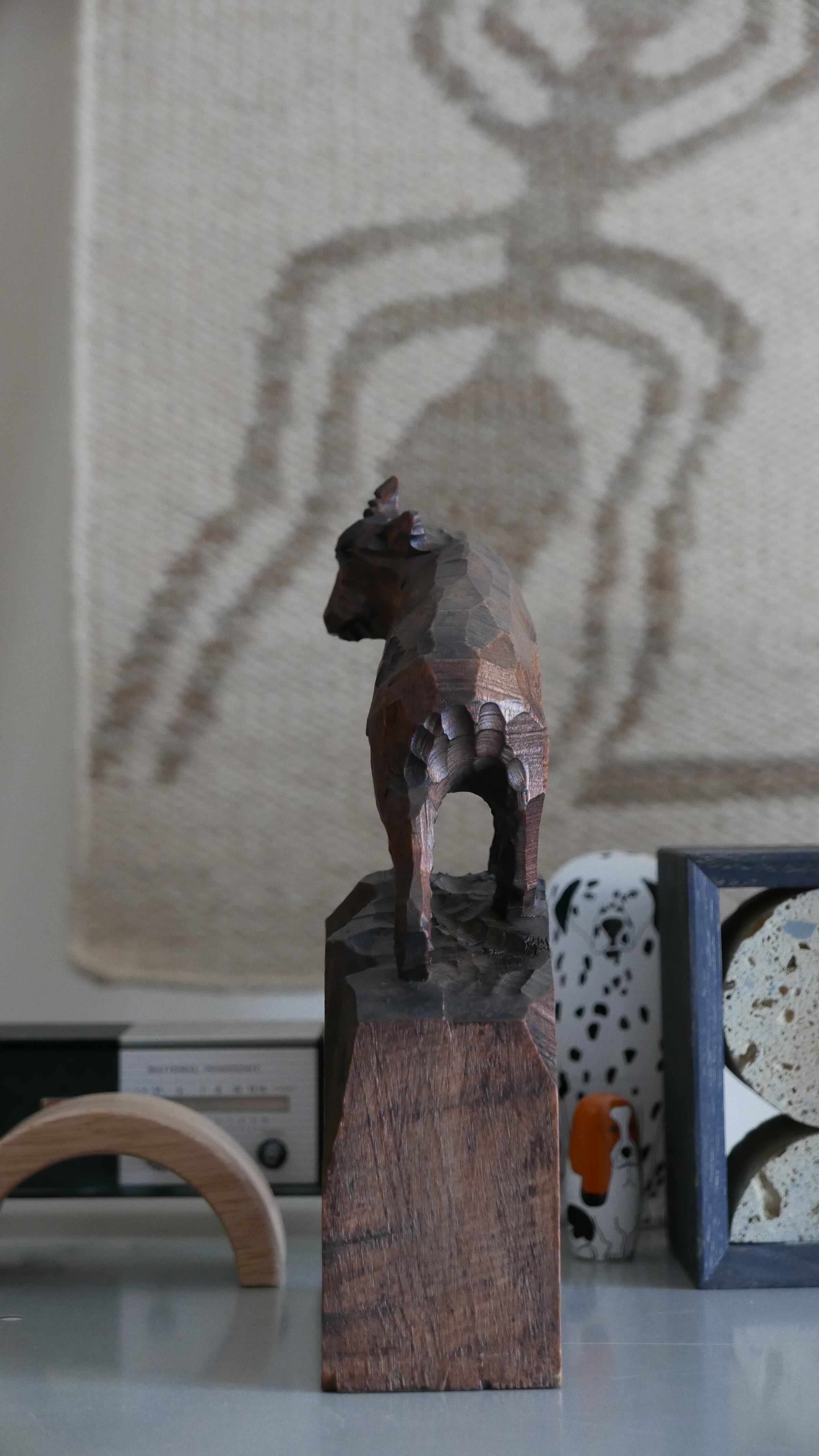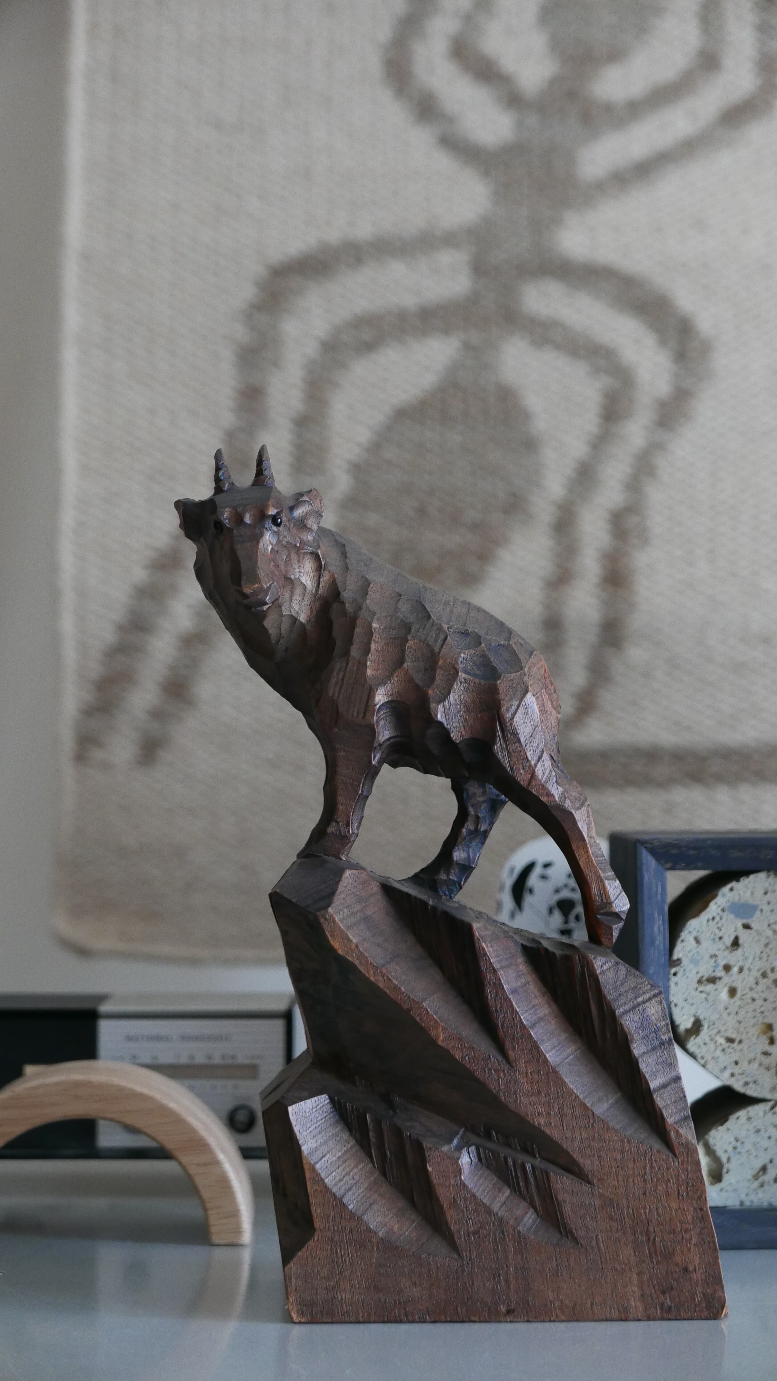 佇むカモシカのウッドオブジェクト。